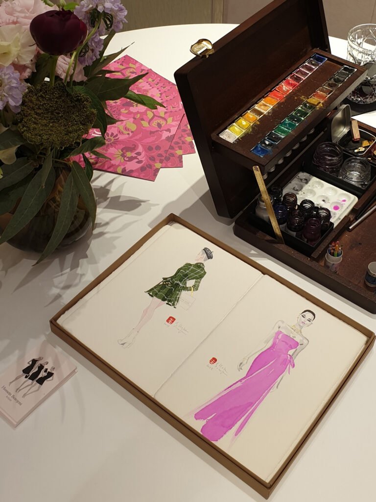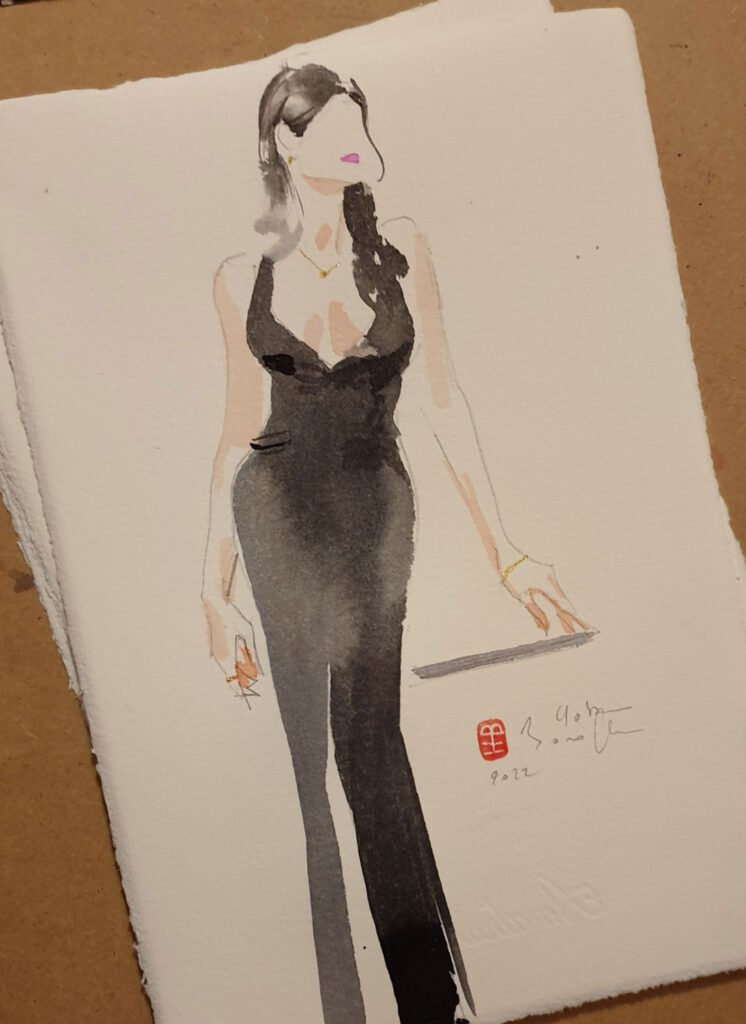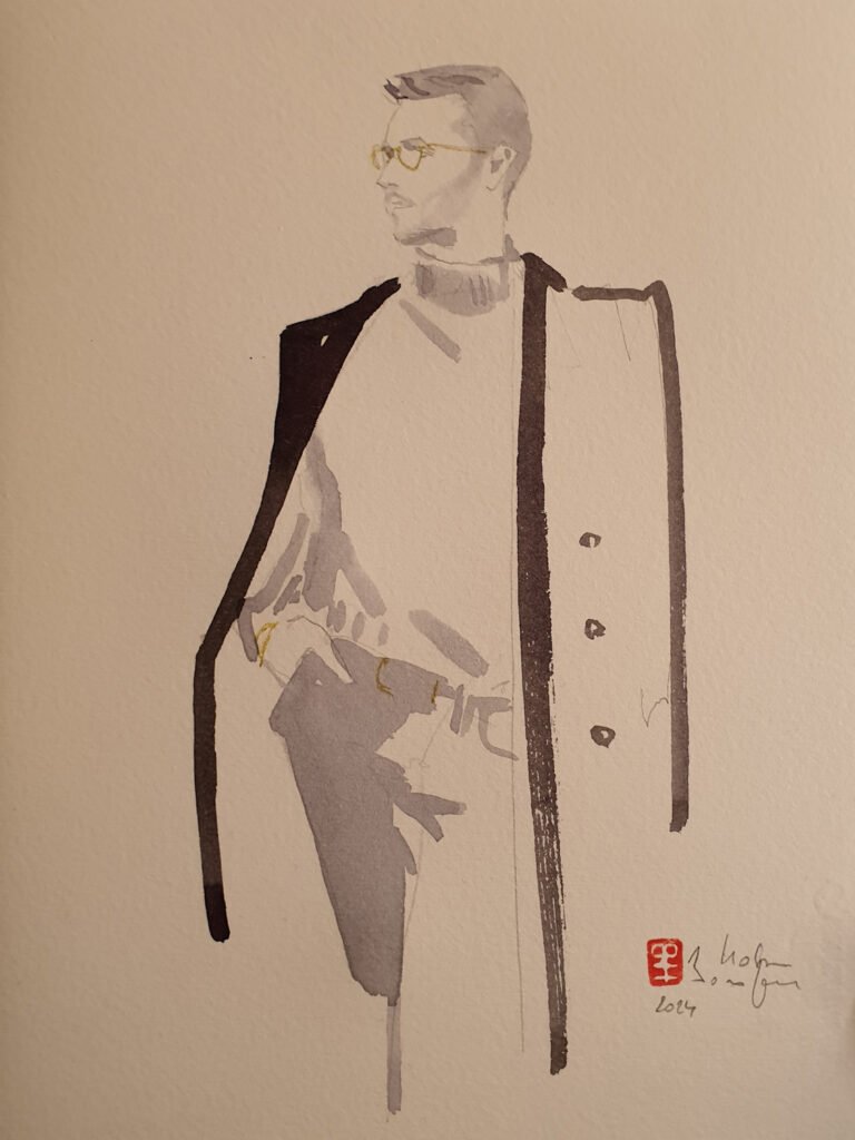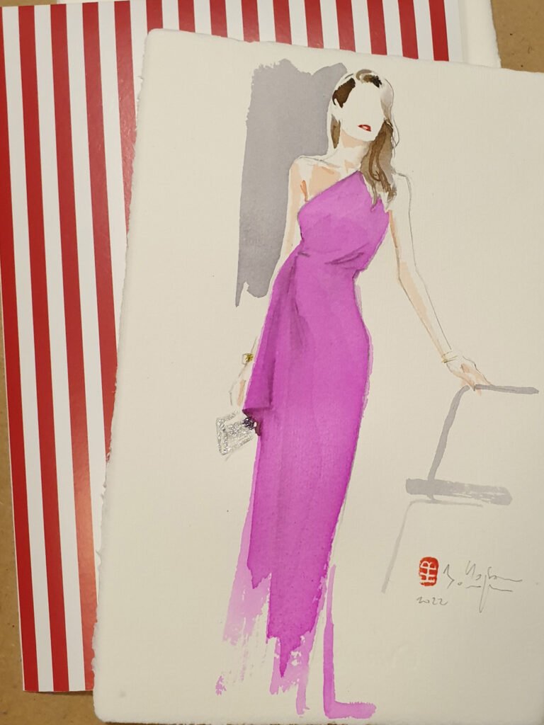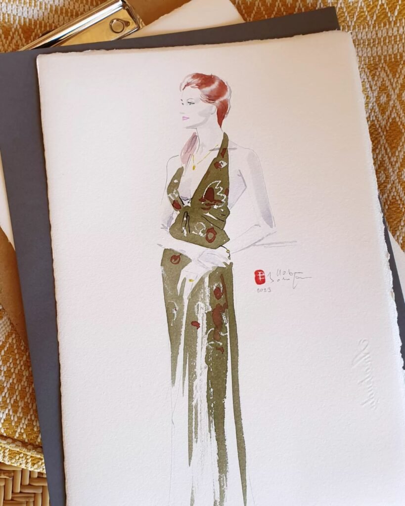 Lors de ces événements, chaque participant devient muse, et je capture l’essence de son look sur le papier. En observant les détails des vêtements, je crée des œuvres qui immortalisent la personnalité et le style de chaque invité, tout en rendant hommage à l’élégance des pièces présentées. Ces dessins deviennent de précieux souvenirs, célébrant la mode et l’individualité.