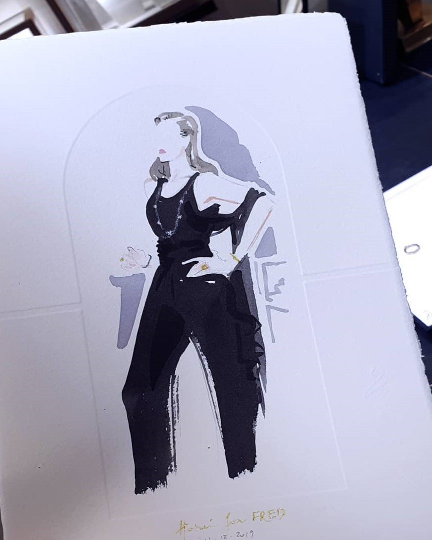 Dans mon offre ALLURE, je réalise des silhouettes de mode des invités en temps réel, mettant en valeur les créations des grandes marques.