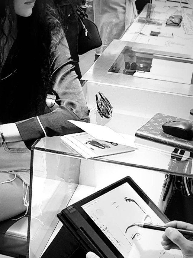 En fonction des thématiques définies par la marque, je dessine en direct les objets sélectionnés par les participantes, créant des œuvres uniques qui capturent l’essence de chaque pièce. Que ce soit un sac à main, une chaussure élégante ou un motif floral, chaque création est conçue avec soin pour refléter le style et les émotions des invités.
